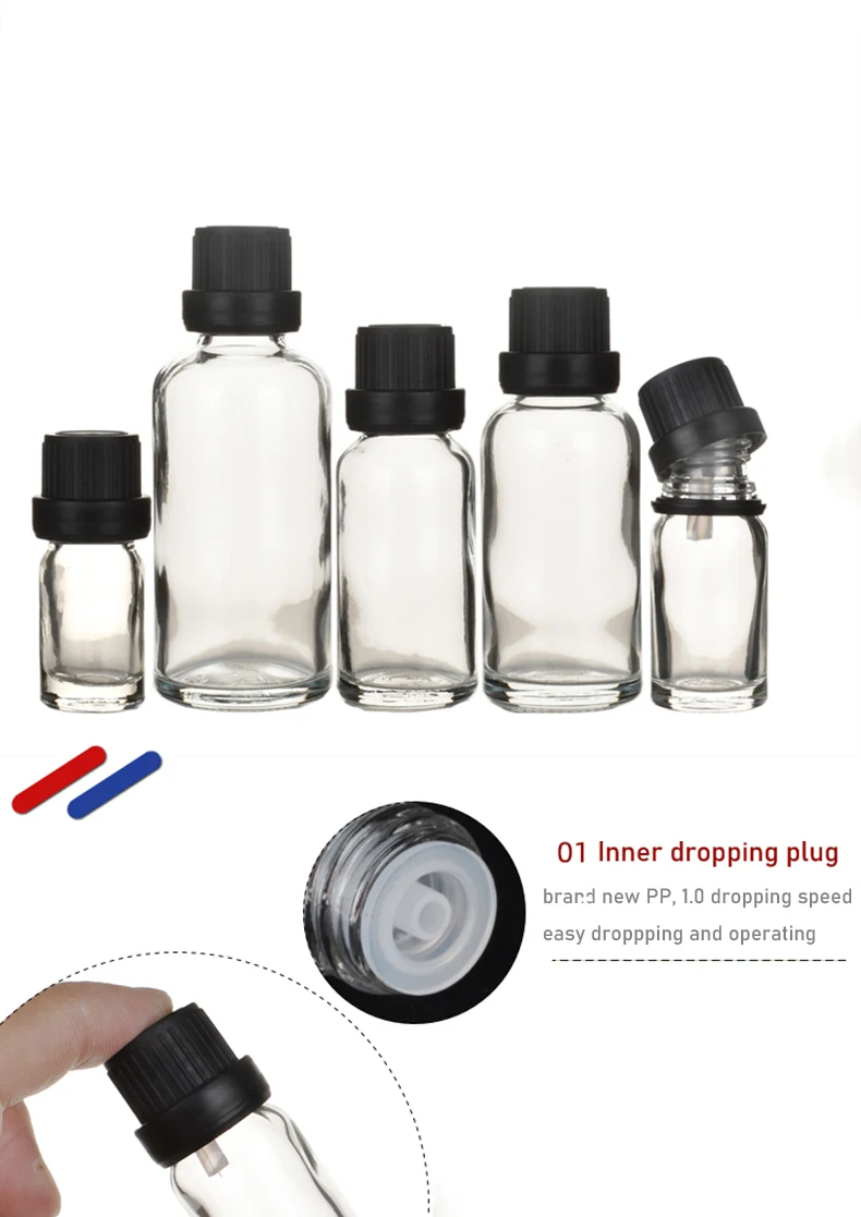 Big Head Clear Glass Bottle Drop White Black Cap Aromatherapy Liquid For Essence/Serum Basic Massage Oil Refill Skincare DIY