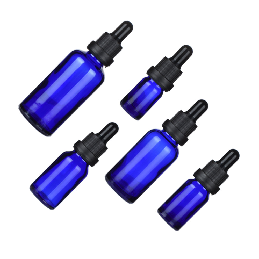 Blue Glass Dropper Bottle Black/White Security Cap Refill DIY Essence Basic Massage Herbal Face Body Oils Serum Perfume Skincare