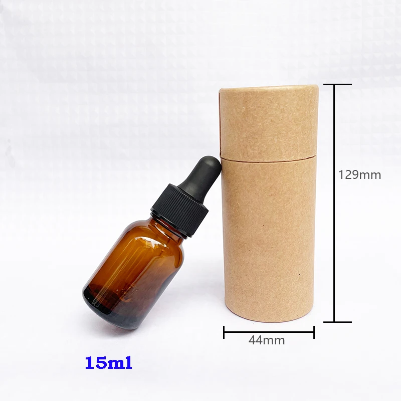 Fat Amber Oil Dropper Bottle W/Round Cardboard Gift Box Essence Massage Perfume Box Packing Kraft Paper Tube 10/15/20/30ml