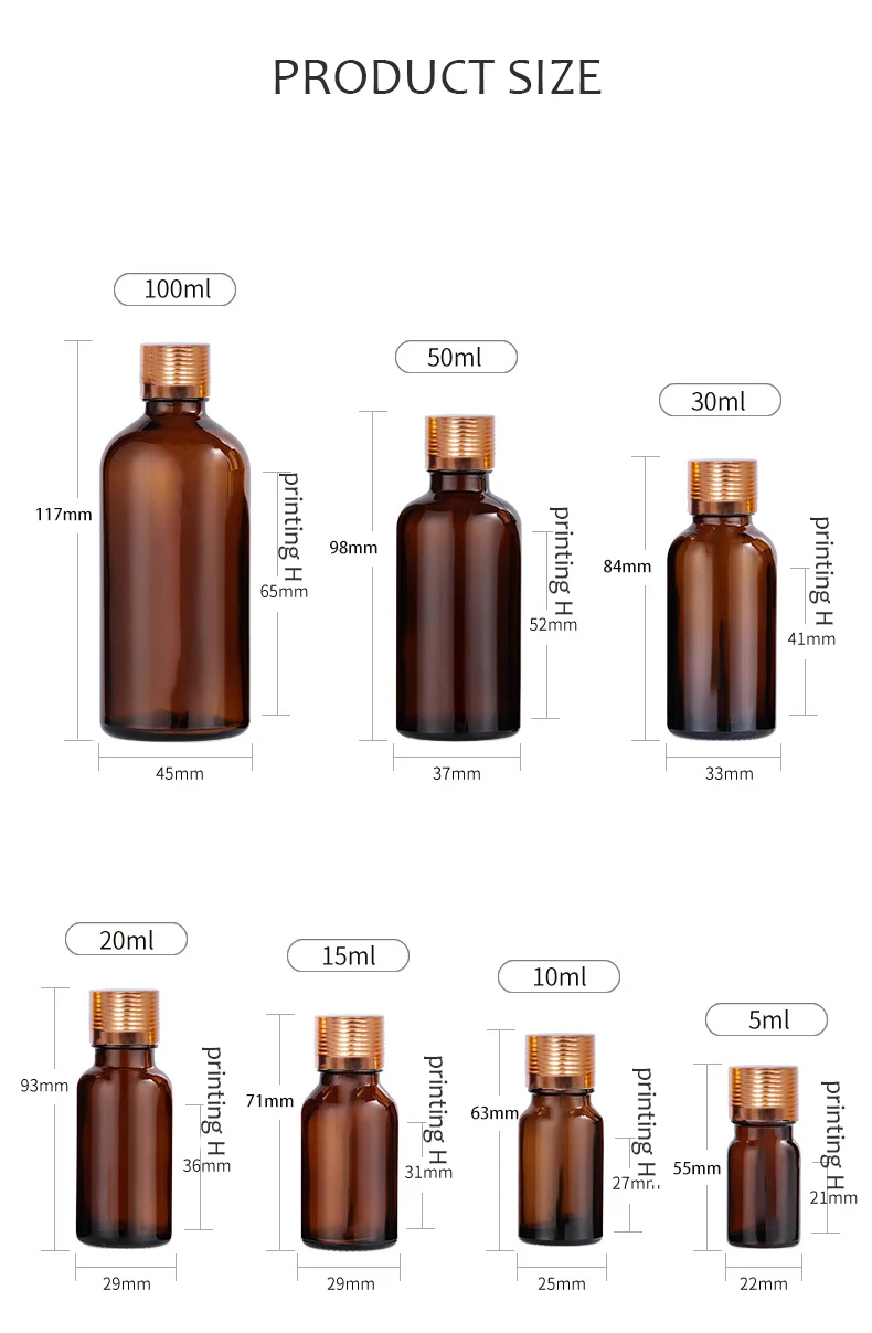 Glass Oil Bottle W/Golden Aluminium Screw Cover/Cap For Essence Oils/Serum Sealing Up Hair Skincare Cosmetics Packaging