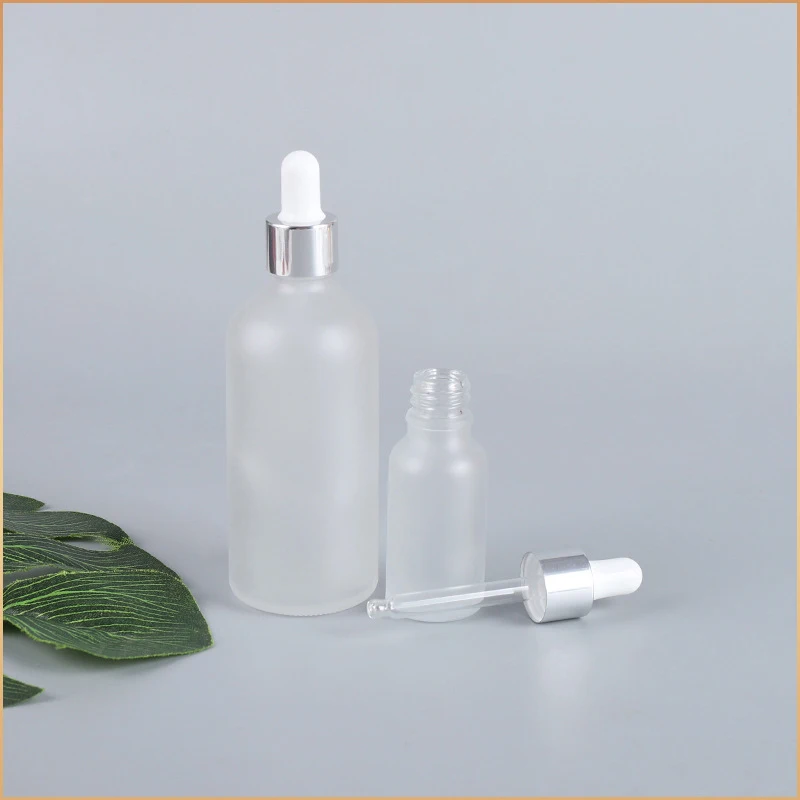 5-100ml Matt Silver Cap Refillable Dropper/Pipette Clear/Frosted Glass Bottle Refill Massage Oils Aromatherapy Liquid Essence/ Serum