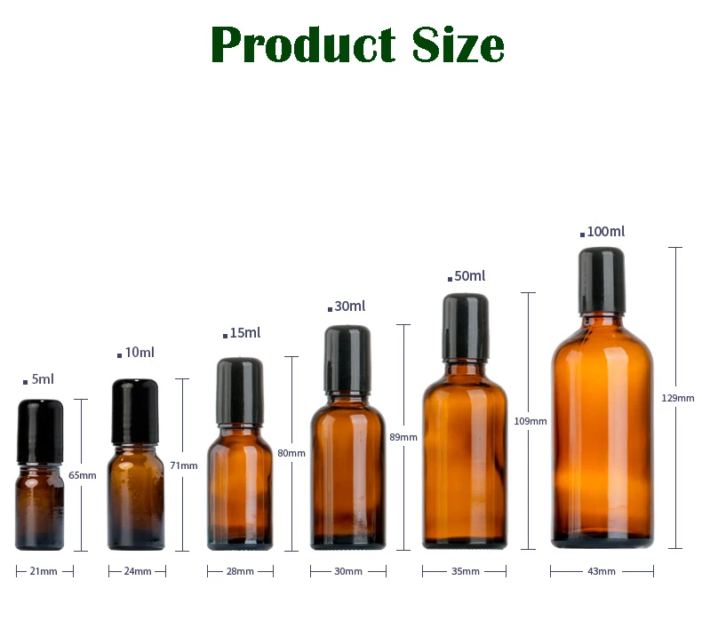 Steel Rolling Ball Roll-On Amber Glass Bottle Refill Container For Essence Perfume/Basic/Herbal Mint Oil Light-avoiding
